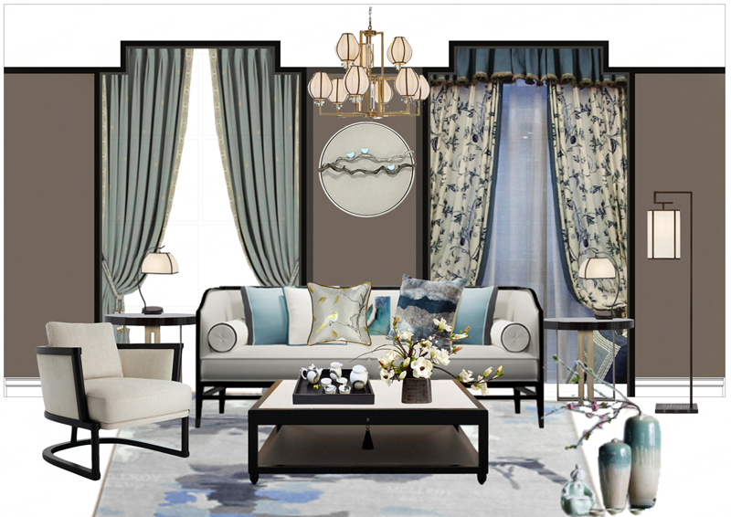 模板名称: 新中式软装PNG白底免抠搭配方案 装修设计效果图集家装资料PS素材